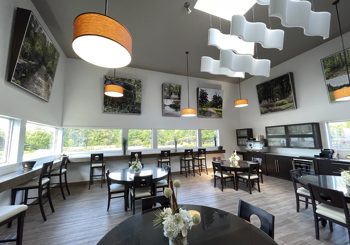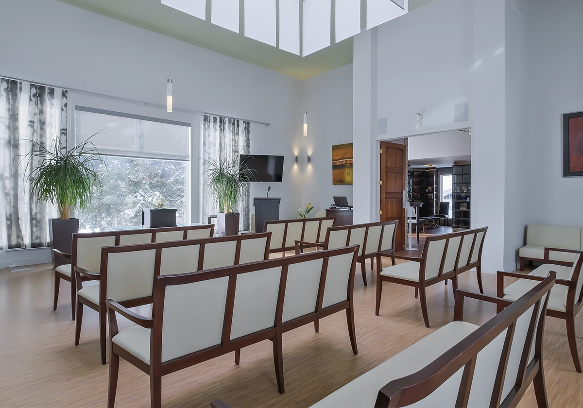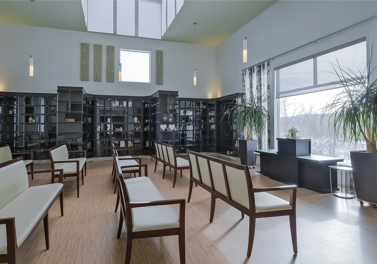 Le concept funéraire et cimetière entièrement réinventé : premier cimetière à faible impact écologique au Québec, complexe lumineux où l’on respire la vie et la zénitude, chapiteau 3-saisons en plein cœur de nature… nous laissons toute la place à la lumière, l’amour et la sérénité.