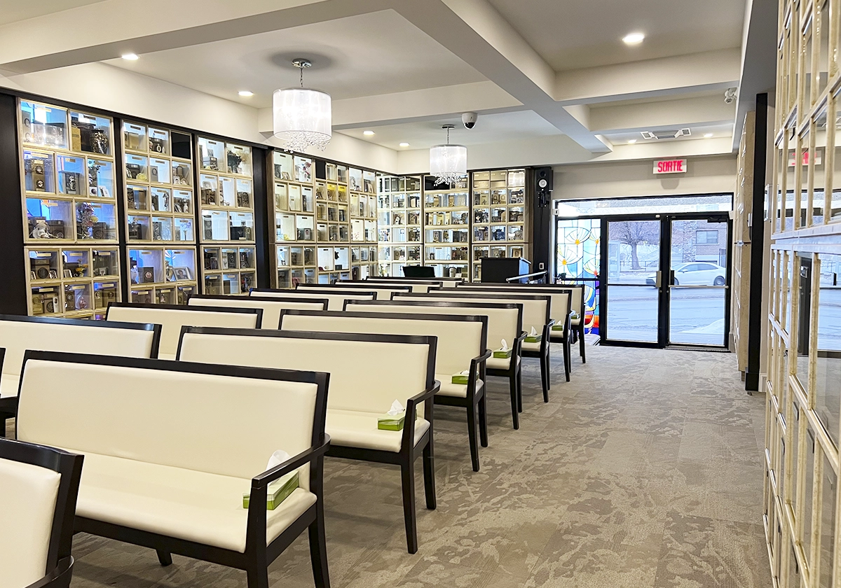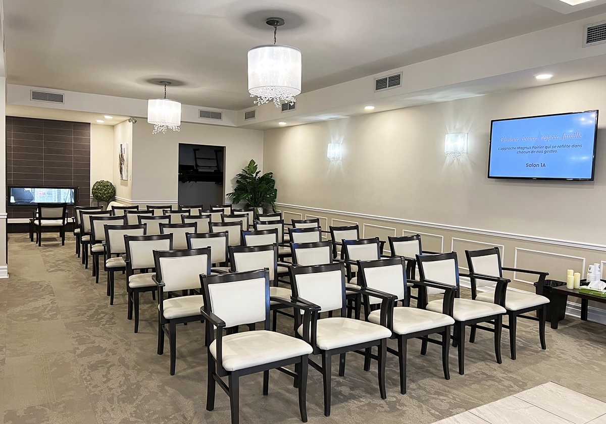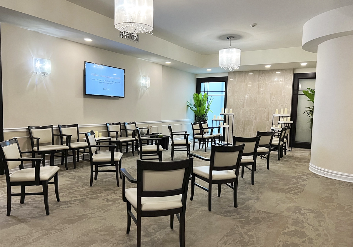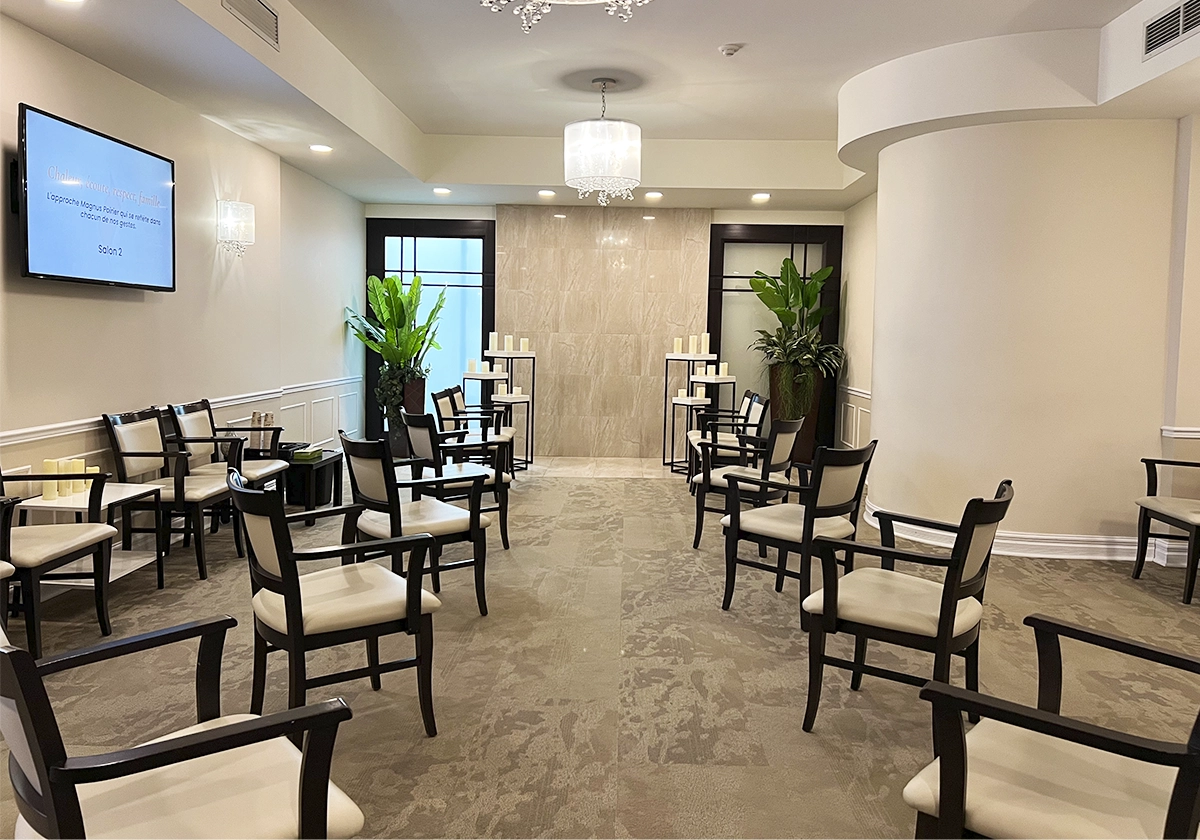 Le complexe funéraire situé au 7388 boul. Viau à Montréal se trouve à proximité des grands axes routiers de la 40 et la 25, le rendant accessible à la grande communauté de Montréal ainsi qu’aux gens de la Rive-Nord comme de la Rive-Sud. Il a également été entièrement rénové afin de lui donner une ambiance à la fois chaleureuse, élégante et moderne.